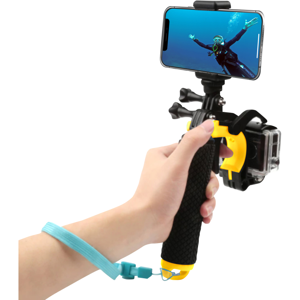 Опис: | Монопод подвійний для екшн-камери і смартфона для підводної зйомки |