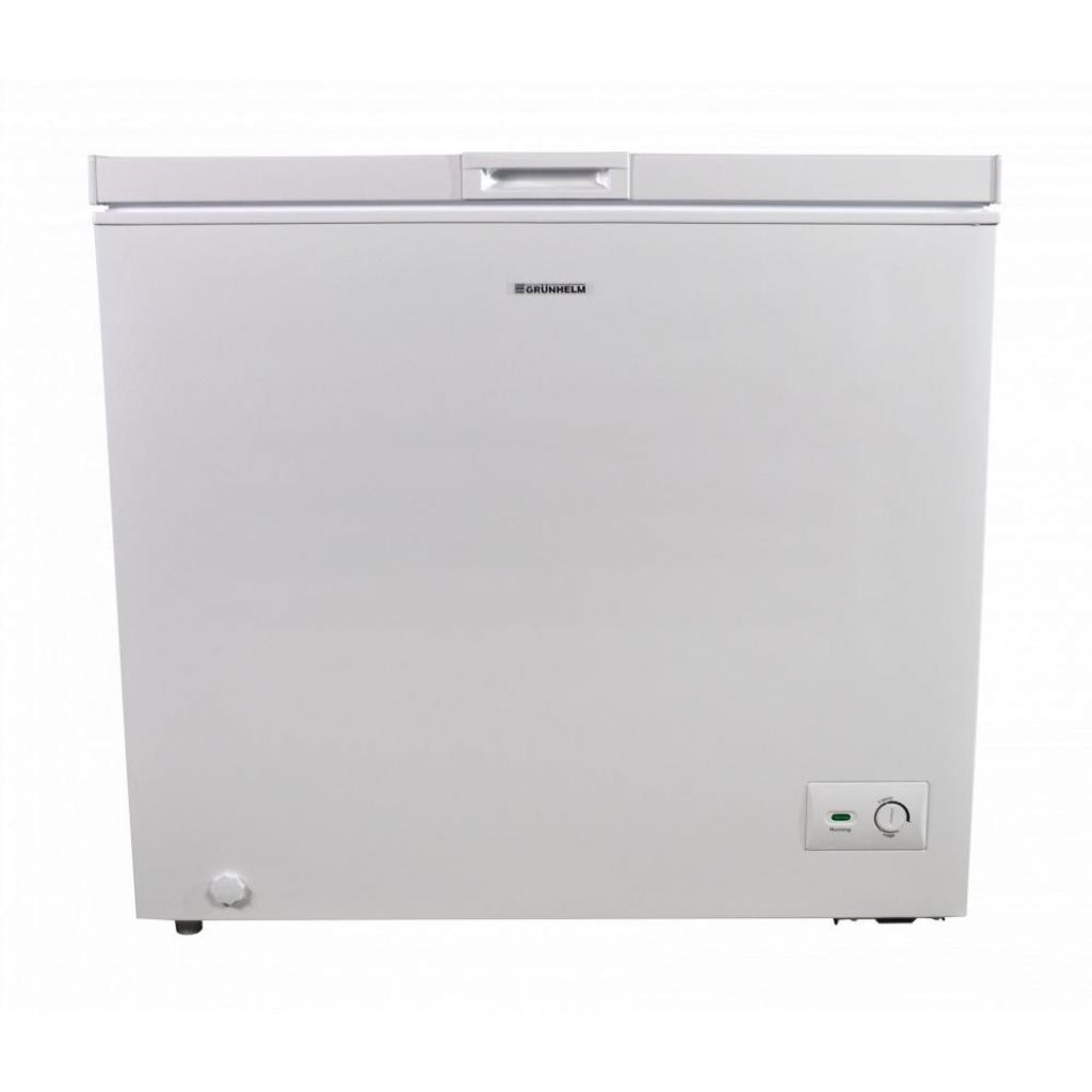 Морозильна скриня Grunhelm GCFW-200 - універсальна горизонтальна морозильна камера, прекрасне рішення для приватних будинків, дач, магазинів, забезпечує тривале зберігання і заморожування продуктів харчування. Модель Grunhelm GCFW-200 отримала великий обсяг камери в 200 л і потужність заморозки 11 кг / 24г, тепер Ви з легкістю можете зберігати м'ясо, овочі, фрукти, готові страви в великому обсязі у себе вдома. А в разі відключення енергоспоживання, морозильна скриня Grunhelm GCFW-200 може зберігати холод до 30 годин. Також варто відзначити крапельну систему заморозки, знімний кошик, низьку витрату електроенергії (клас А +), надійність і компактність. Всі вище перераховані якості роблять покупку даної морозильної камери розумним і економічним рішенням.