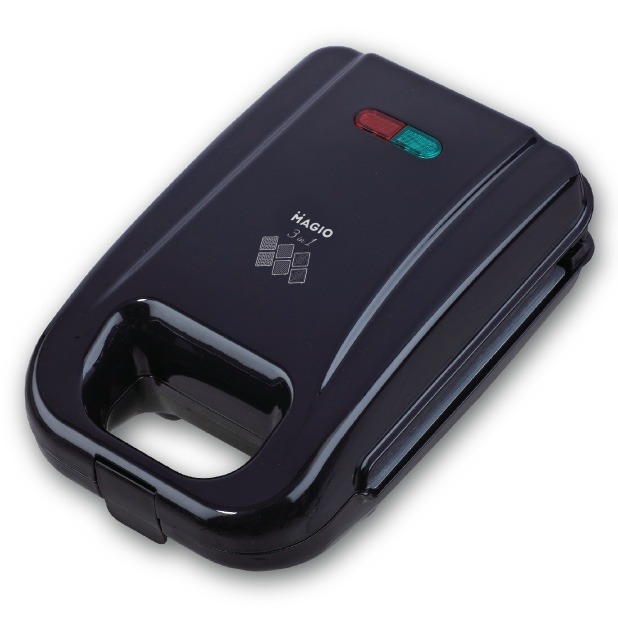 Мультимейкер Magio МG-363, Black, 650 Вт, антипригарне покриття, 3 знімних панелей: трикутники, вафлі, гриль