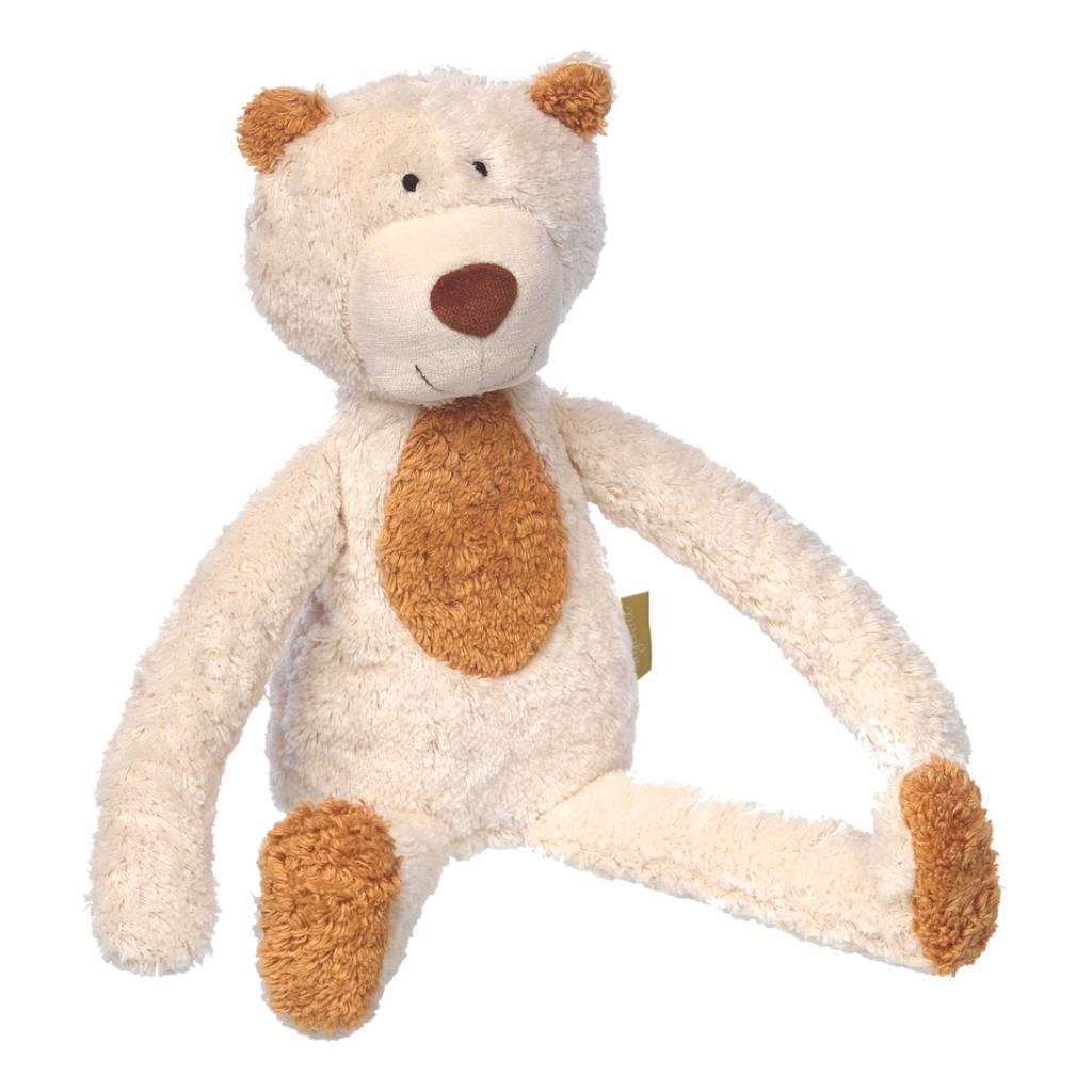 Якщо для вас важливо використовувати натуральні матеріали для виготовлення перших іграшок вашої дитини, це ідеальний вибір. Цей довговічний м'який ведмідь зроблений з органічно вирощеної бавовни і наповнений м'якою овечою вовною. Риси його обличчя ретельно вишиті. М'який і чистий за формою і кольором іграшковий ведмедик кремового кольору ідеально підходить для пробудження уяви вашої дитини! Якщо цьому м'якому ігровому приятелю знадобиться ванна, то пральна машина з делікатним режимом прання вовни підійде ідеально.