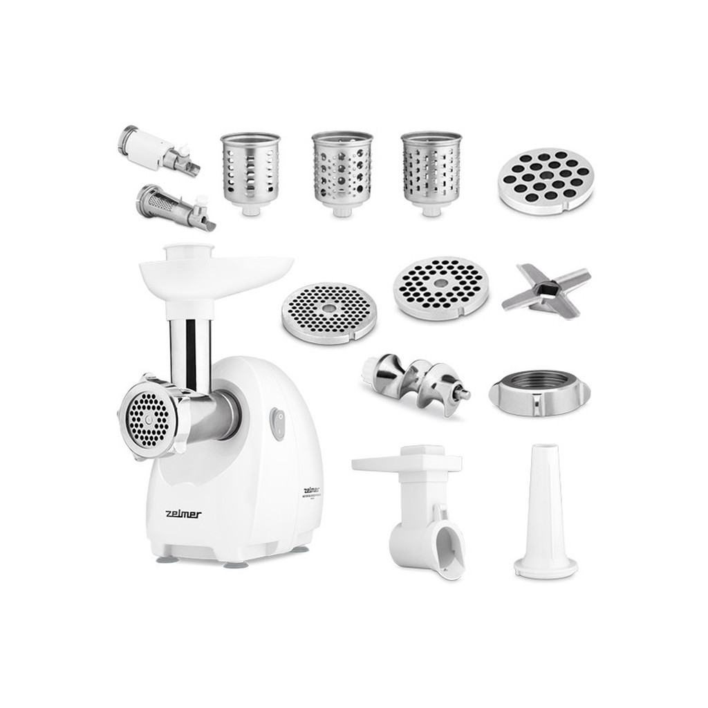 | Додатково: | Набір включає 3 барабана для подрібнення, 3 решітки з нержавіючої сталі, насадку для виготовлення ковбас і відавліватель помідорів. |