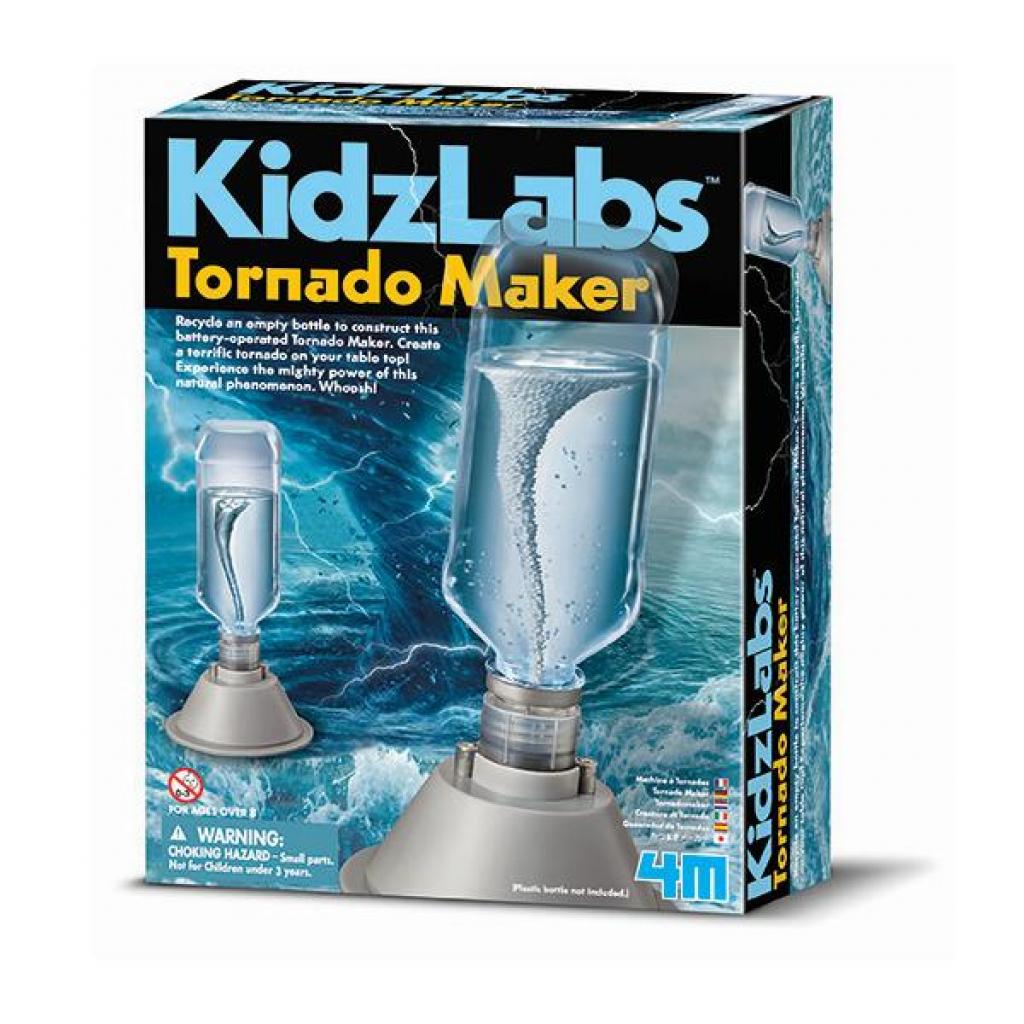 Переробіть порожню пляшку і створіть настільний торнадо з живленням від батарей. У воду можна додати фарбу або блискіток для вражаючого ефекту. У наборі докладна інструкція з проведення досліду. Дитина дізнається про закони природи і основи гідродинаміки.