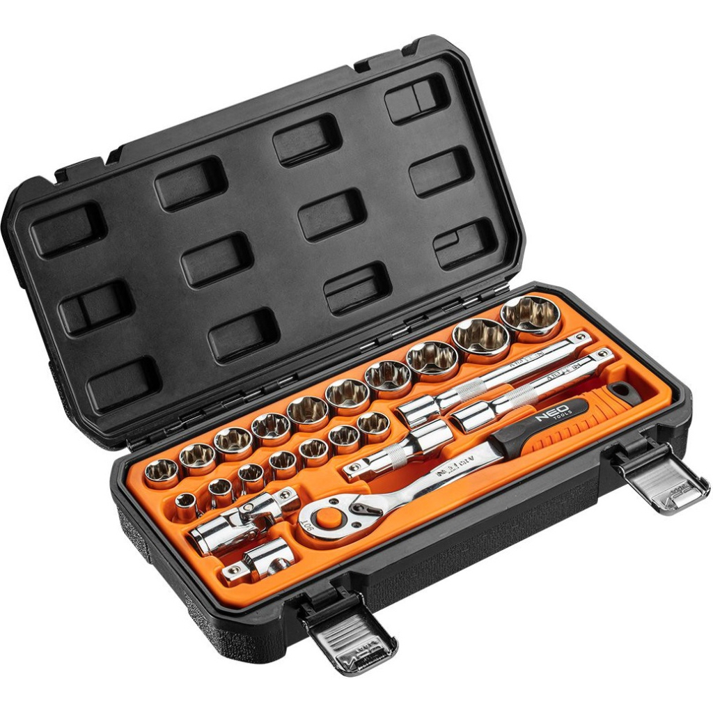 Набір змінних головок NEO 1/2" 23 шт 08-694 підходить для проведення ремонтних робіт автомеханіком. Всі інструменти виготовлені з високоміцної хромованадієвої сталі.