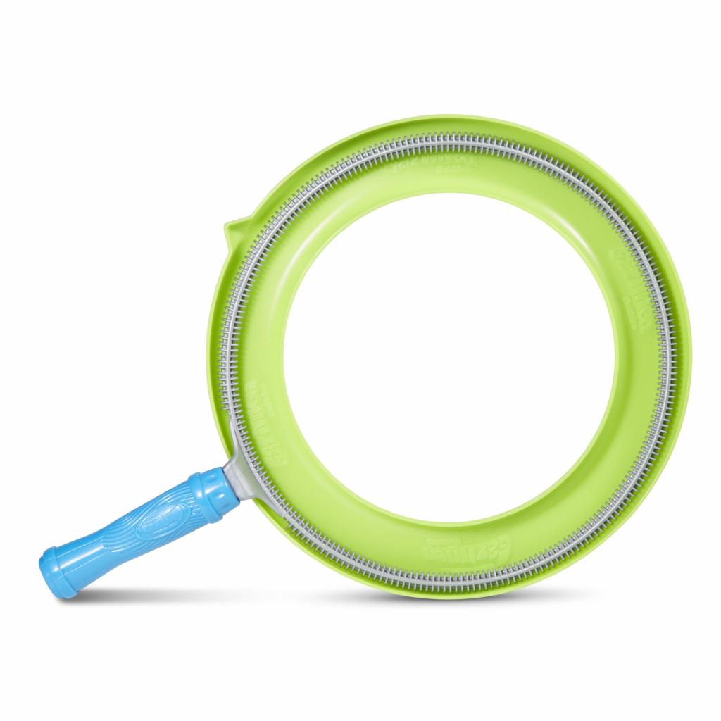 Набір мильних бульбашок Gazillion "Гіганте кільце" діаметром 20 см з розчином в 237 мл наборі. Мильна рідина екологічна, безпечна, нетоксична, не залишає плям на одязі та меблях. Для дітей від 3 років.