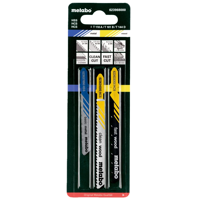 Набор пилок Metabo лобзиковых 3шт. (T101B, T144D, T118A)