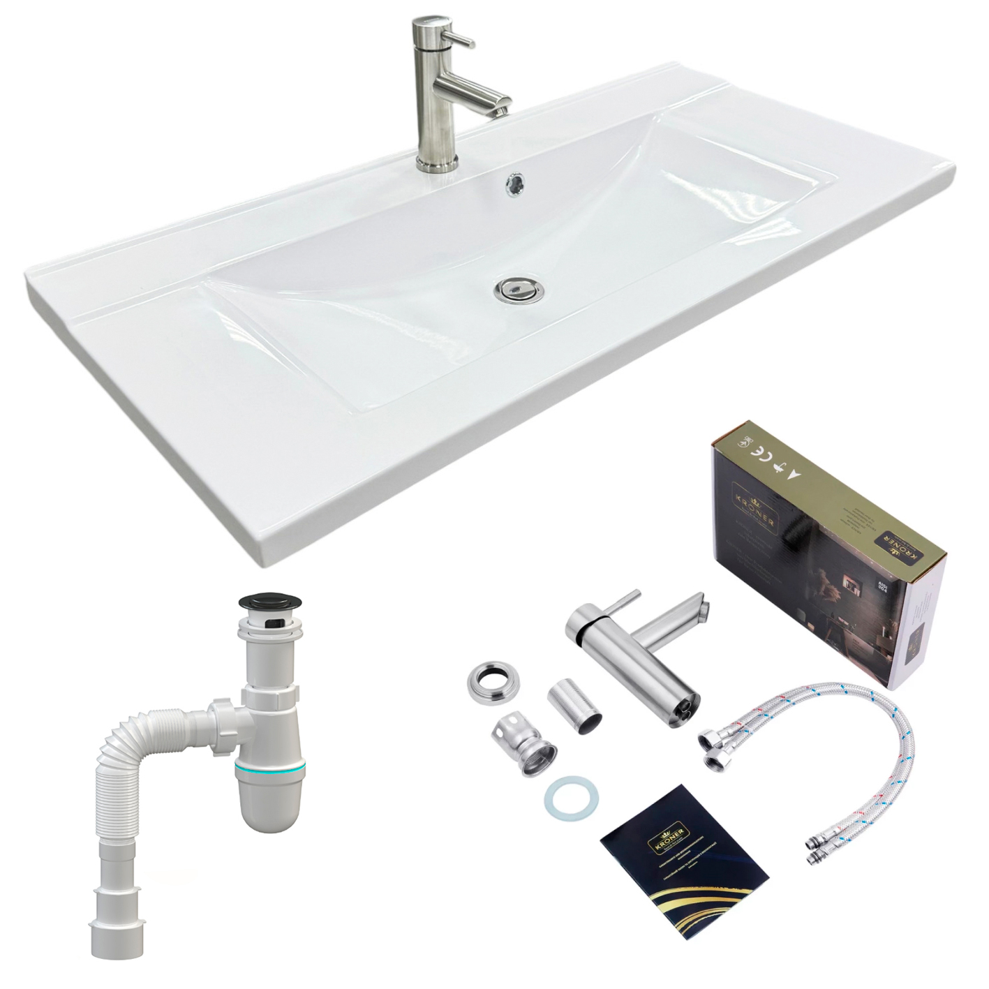 Набір. Раковина Adamant QUANTO 100, штучний камінь, прямокутний із сифоном Click-Clack + змішувач