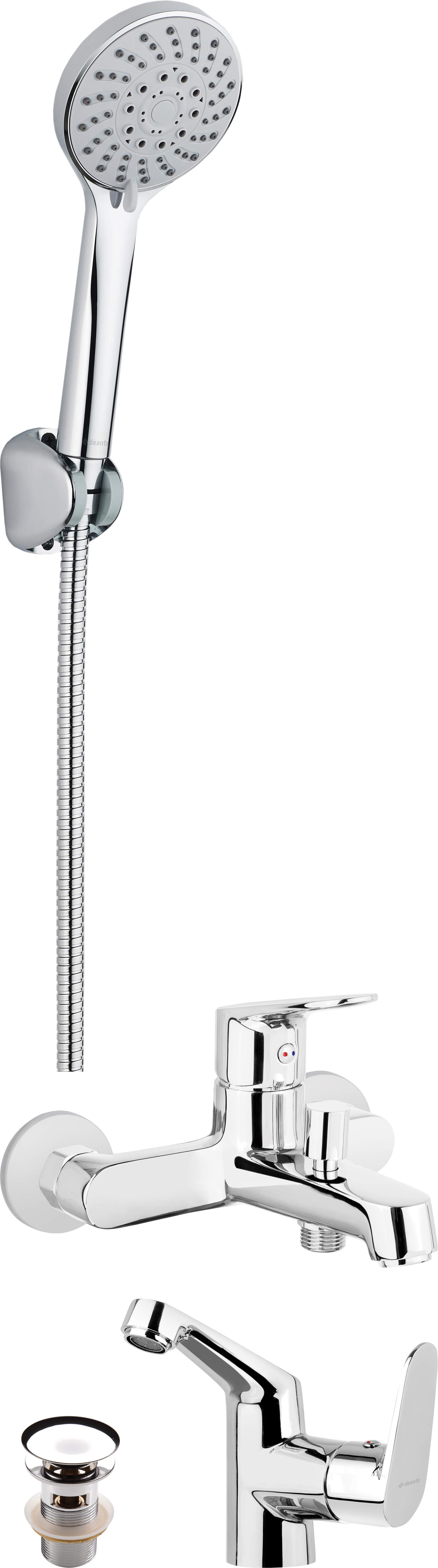Комплектація: | Змішувач для раковини, змішувач для ванни, ручний душ, душовий шланг, пробка клік-клак, утримувач для душу |