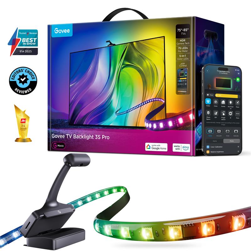 Набір адаптивного підсвічування Govee R2A81 Three-cameraTV Backlight 75-85', RGBIC, WI-FI/Bluetooth, чорний
