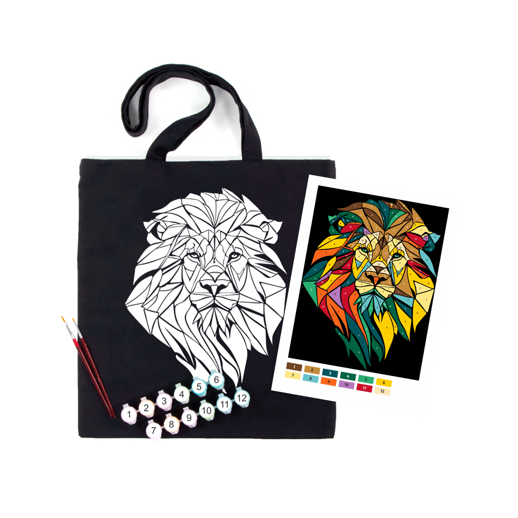 екосумка-розмальовка, чорна, Неоновий лев 38х42см