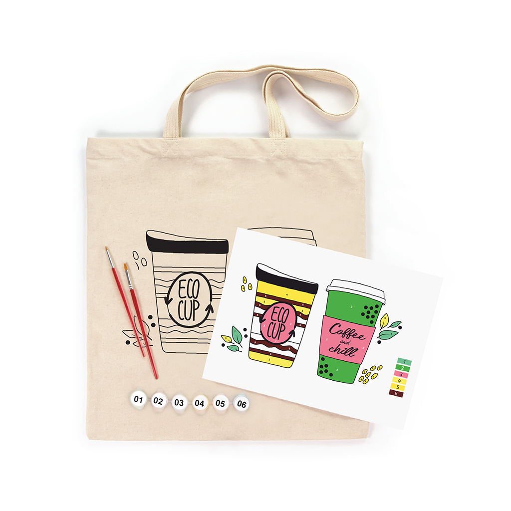 Набір для творчості Rosa Talent екосумка-розмальовка, Coffee Time 38х42 см (4823098544616)