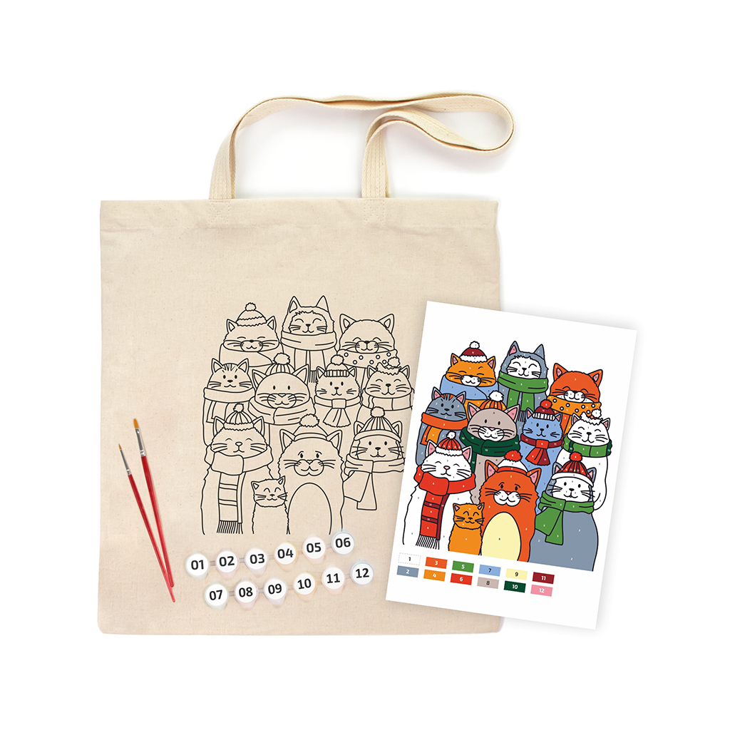 Набір для творчості Rosa Talent екосумка-розмальовка, Коти в шапках, 38х42 см (4823098543527)