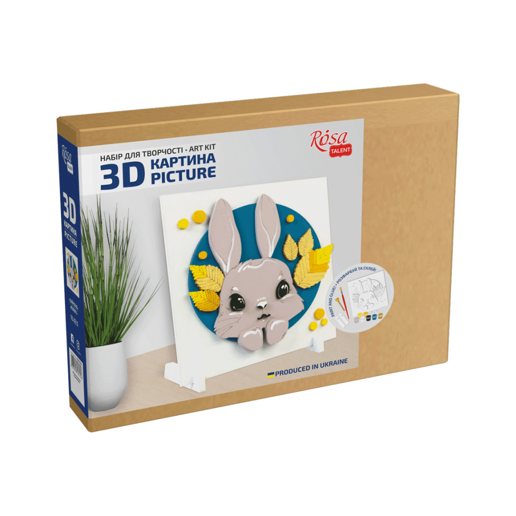 Набір для творчості Rosa Talent Картина 3D Зайченя ДВП ґрунтоване 18х18 см (4823098535706)