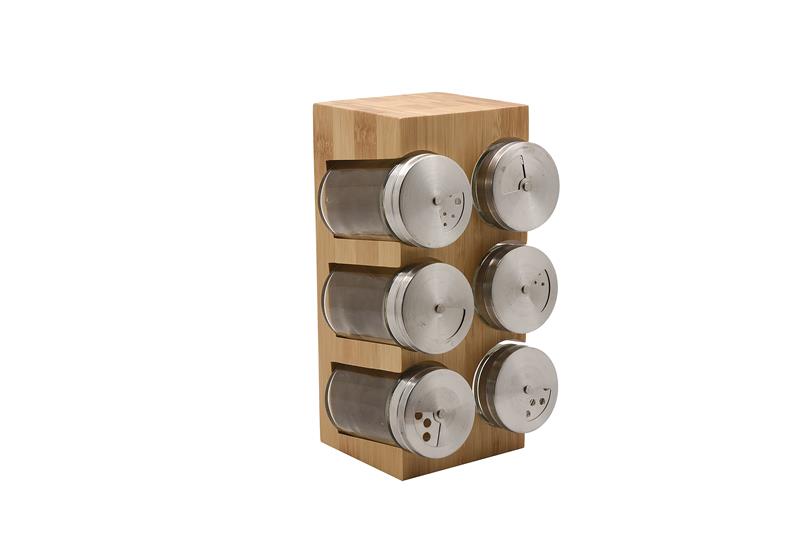 Набір ємностей для спецій на підставці Ardesto Midori, 7 предметів, 80мл, 10.7х10х20см, бамбук, нержавіюча сталь, скло, пластик