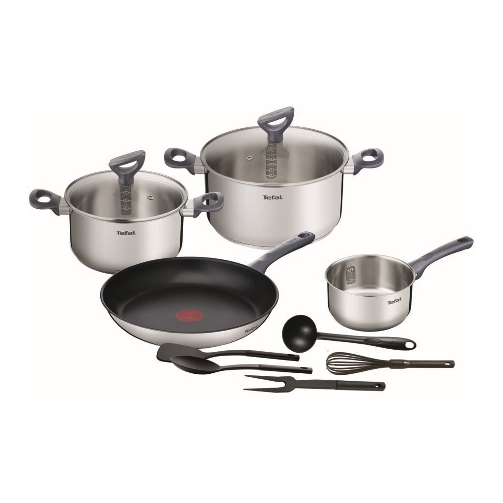 Опис: | набір з 11 предметів:2 катрюлі з кришкою, Сковоротка, маленька каструля без кришки та інші кухонні предмети |
