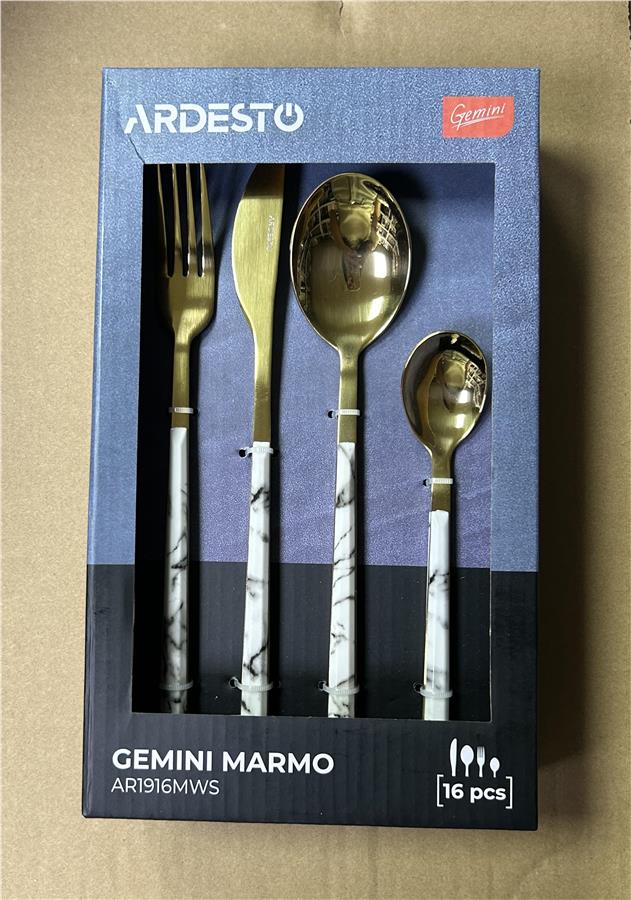 Набір столових приборів Ardesto Gemini Marmo, 16 приборів, нержавіюча сталь, пластик, золотисто-білий