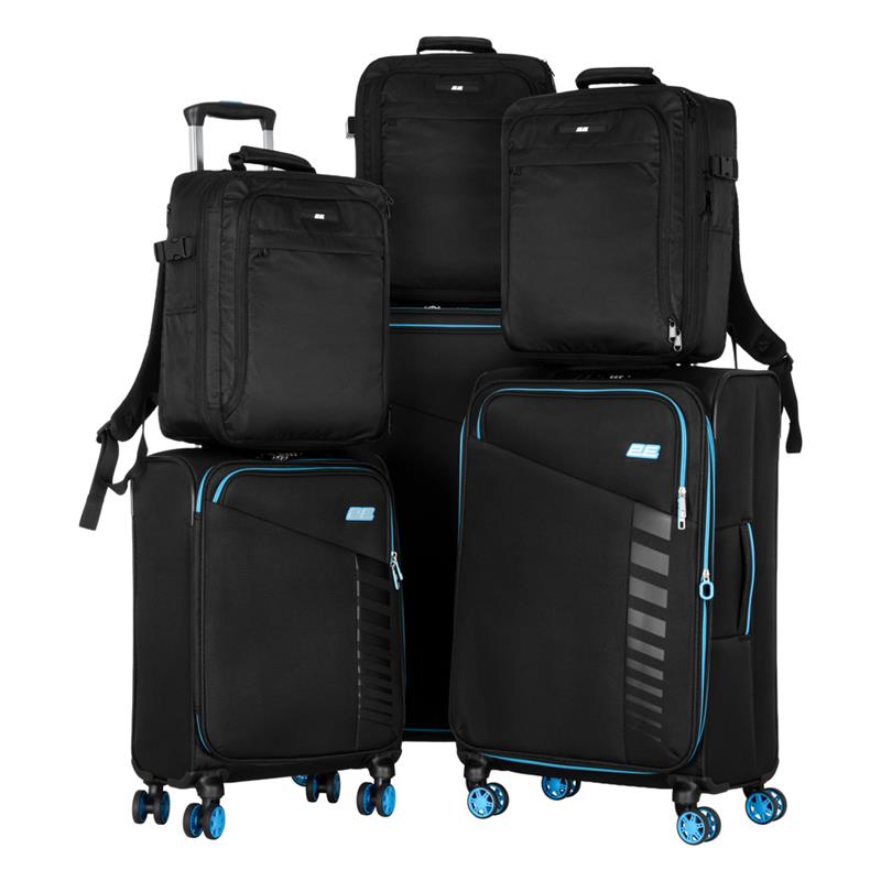 Набір валіз 2E, Trek, (L+M+S), TSA, 4 колеса, + 3 рюкзаки Cabin (2E-BPET-CABIN-BK), поліестр, чорний