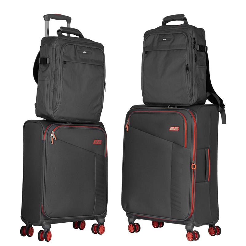 Набір валіз 2E, Trek, (M+S), TSA, 4 колеса, + 2 рюкзаки Cabin (2E-BPET-CABIN-GR), поліестр, сірий