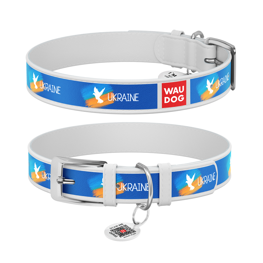 Нашийник для тварин WAUDOG Design з QR паспортом "Прапор" Ш 12 мм Д 18-24 см білий (3601-0229-15)