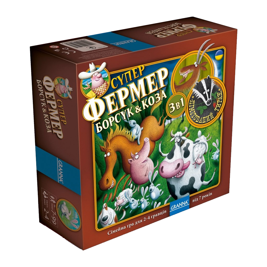 Опис: | У грі Суперфермер 3 в 1 кожен гравець бере на себе роль власника тваринницької ферми. Основною метою є розведення, обмін і збір різних тварин. У класичну гру Суперфермер додані два персонажа: коза і борсук. Тепер можна вибрати свою версію і правила гри! Стати Суперфермер, долаючи нові перешкоди, стає ще цікавіше! |