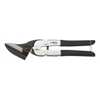Ножиці по металу NEO служать для різання сталі товщиною до 0.9 мм, загартованої сталі товщиною до 0.7 мм, алюмінію товщиною 1 мм, міді - до 1.1 мм, а також пластмас товщиною до 5 мм, Корпус виготовлений з високоякісної хромомолібденової сталі. Леза з індукційним загартуванням, що забезпечує довгий термін служби. Конструкція не дозволяє матеріалу вислизати з рук під час роботи. Завдяки антиковзаючим накладкам на рукоятках, інструмент добре лягає в долоню і не вислизає. Гострі кромки губок легко і плавно ріжуть листовий метал. Має сертифікат TÜV Rheinland.