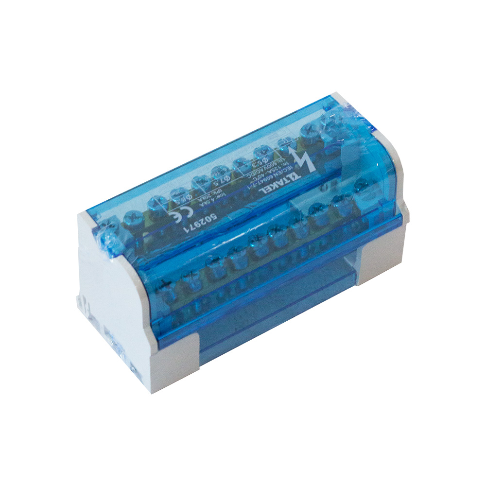 Нульова шина на DIN рейку у пластиковому корпусі 2х11 отворів 125А синя