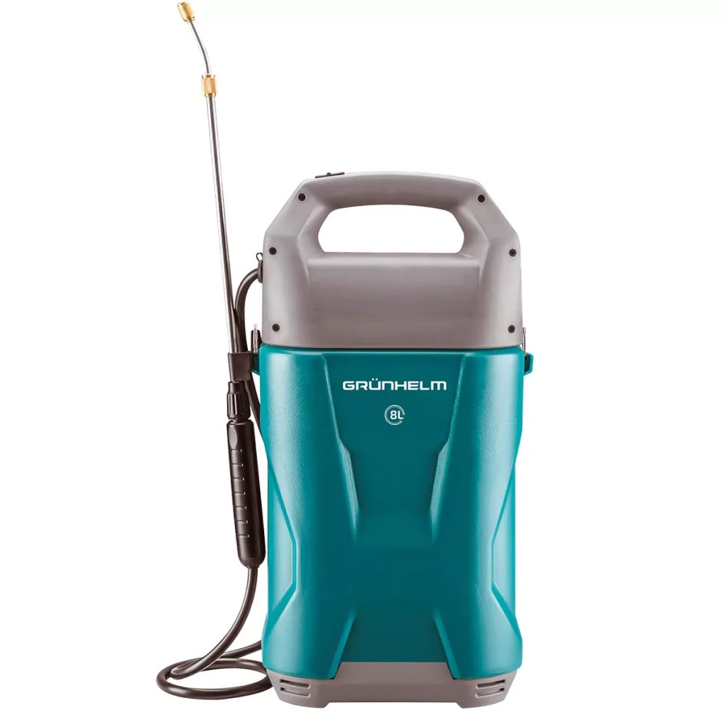Акумуляторний обприскувач Grunhelm GHS-8 полегшує експлуатацію за рахунок електронасоса, що працює від вбудованої акумуляторної батареї напругою 3,7V/2Ah. Довговічний герметичний кислотний акумулятор не вимагає обслуговування та заряджається від автоматичного зарядного пристрою, що входить до комплекту виробу.