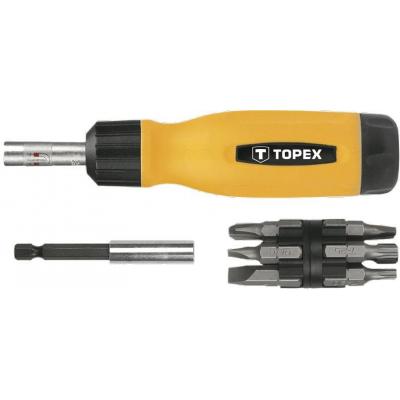 Змінні наконечники TOPEX розмір 1/4 ". Виготовлені з високоякісної хромованадіевої сталі, що забезпечує довгий термін служби інструменту. Ергономічна пластикова рукоятка забезпечує високий комфорт користування. Наконечники розміщені на зручній стійці, що забезпечує економію місця і часу при роботі. Бренд TOPEX призначений для домашніх майстрів.
