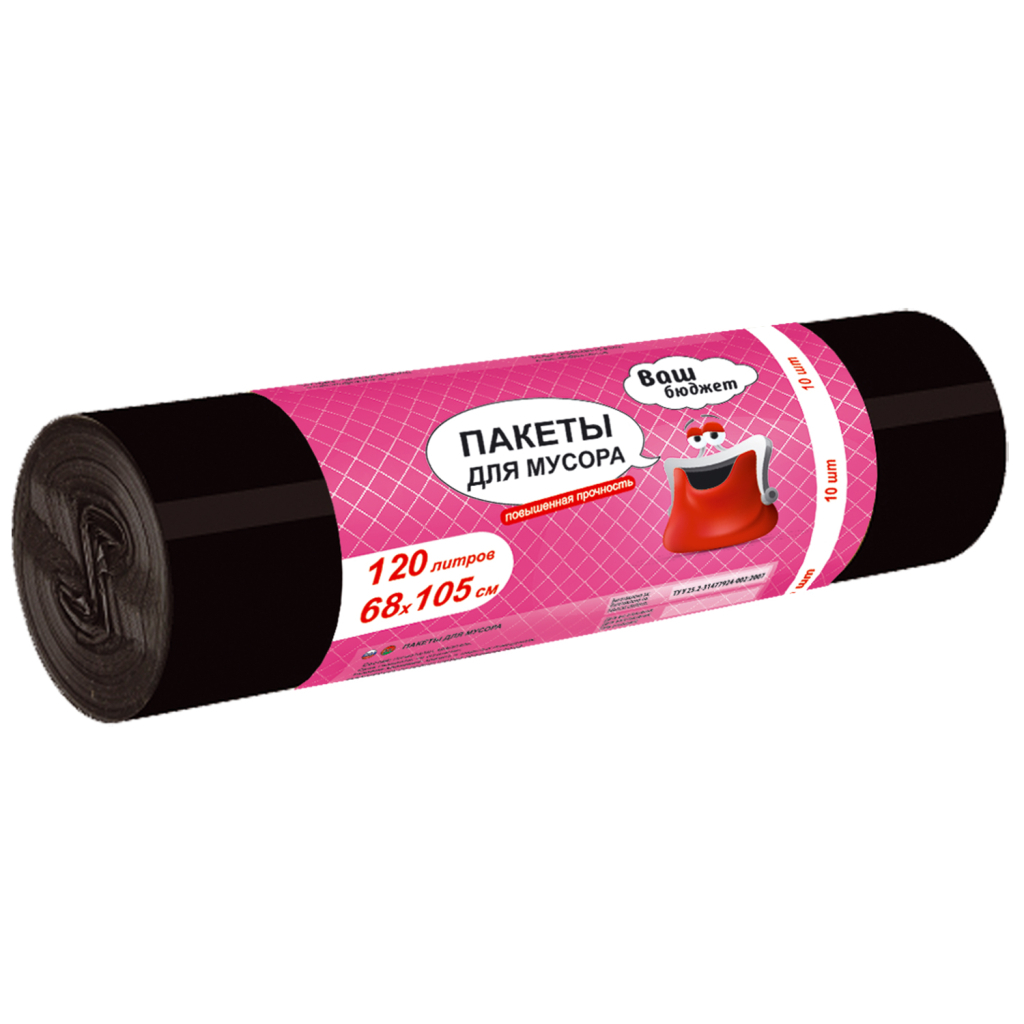 Великі і міцні Пакети для сміття Ваш Бюджет 120 л LDPE, 70см х 110см, чорні - призначені для збору, зберігання, транспортування та утилізації самих різних видів побутових і виробничих відходів. Значний розмір цих пакетів дозволяє їх використовувати з урнами і контейнерами великого розміру і заввишки близько 90 см. Тому вони найчастіше застосовуються в організаціях, установах та громадських закладах.Перевагою Пакетів для сміття Ваш Бюджет 120 л є якісний і міцний поліетилен, з якого вони виготовлені. Вони не рвуться при транспортуванні, тому їх вважають за краще в своїй роботі клінінгові компанії, готелі, заклади громадського харчування.
