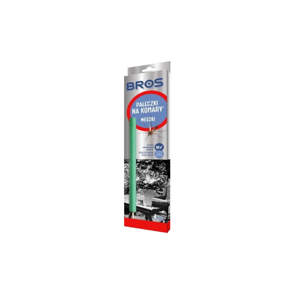 Інсектицидний засіб Bros Палички від комарів призначені для боротьби з комарами, мошками та кровосисними комахами поза приміщеннями, наприклад, у саду, на терасі або балконі. Одна паличка захищає приблизно 15 м².