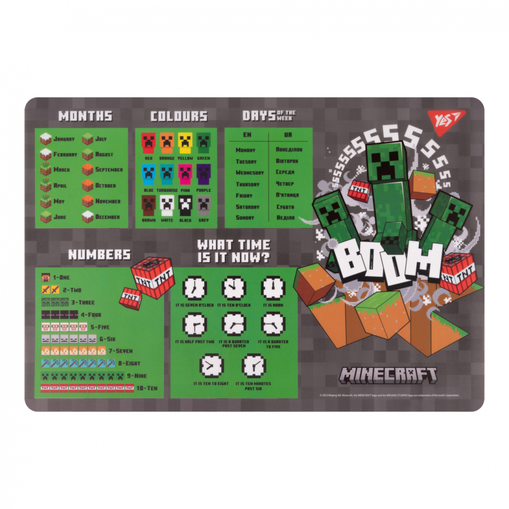 Підкладка настільна Yes А3 Minecraft Creepers з підказками англ (492248)