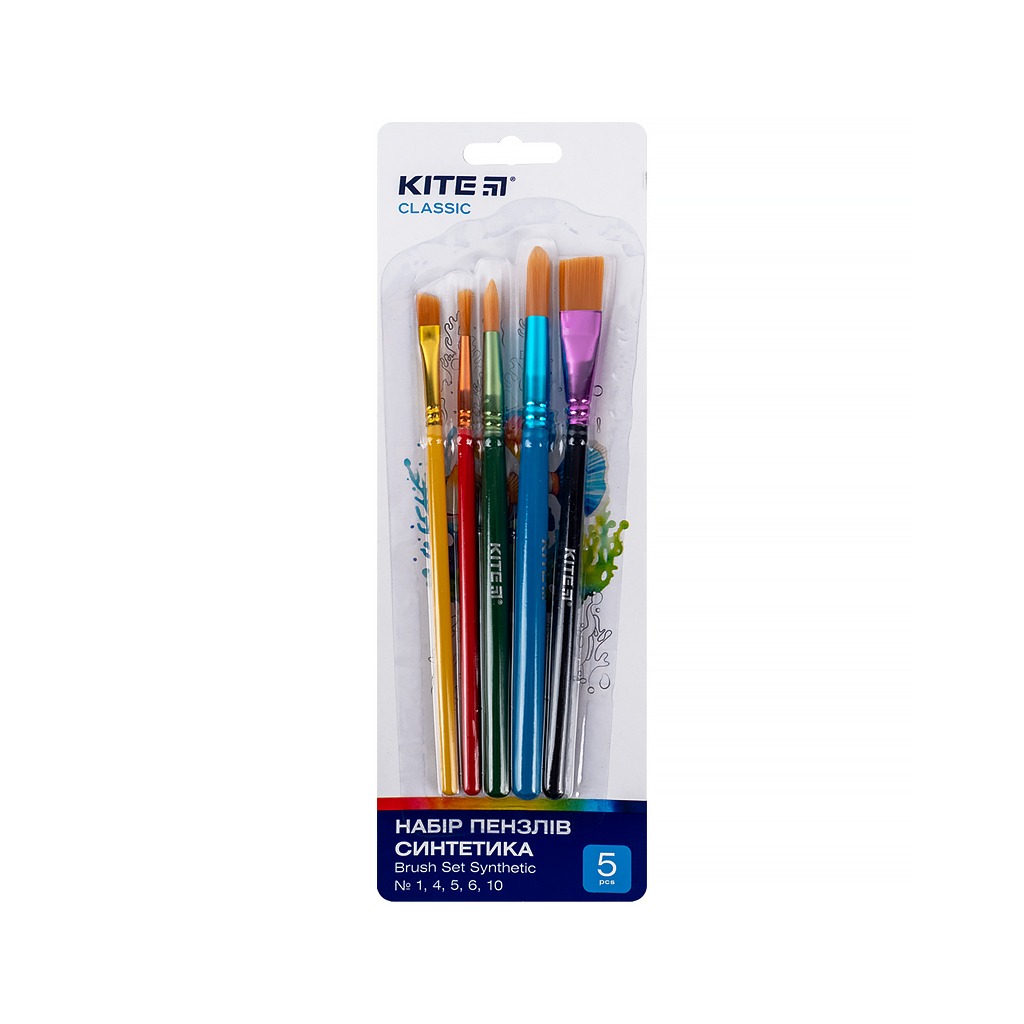 Пензлик для малювання Kite Classic набір із 5-ти пензлів синтетика 1, 4, 5, 6, 10 (K-332)