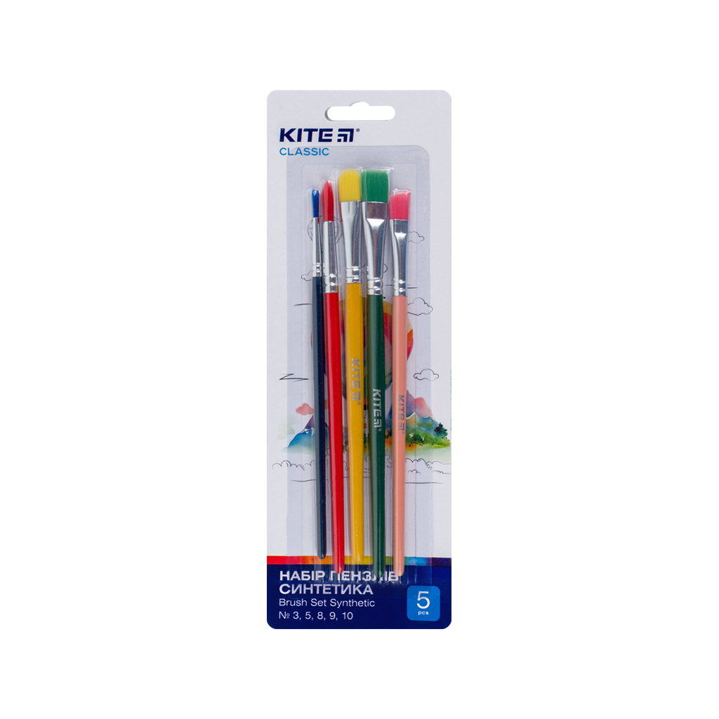 Пензлик для малювання Kite Classic набір із 5-ти пензлів синтетика 3, 5, 8, 9, 10 (K-333)