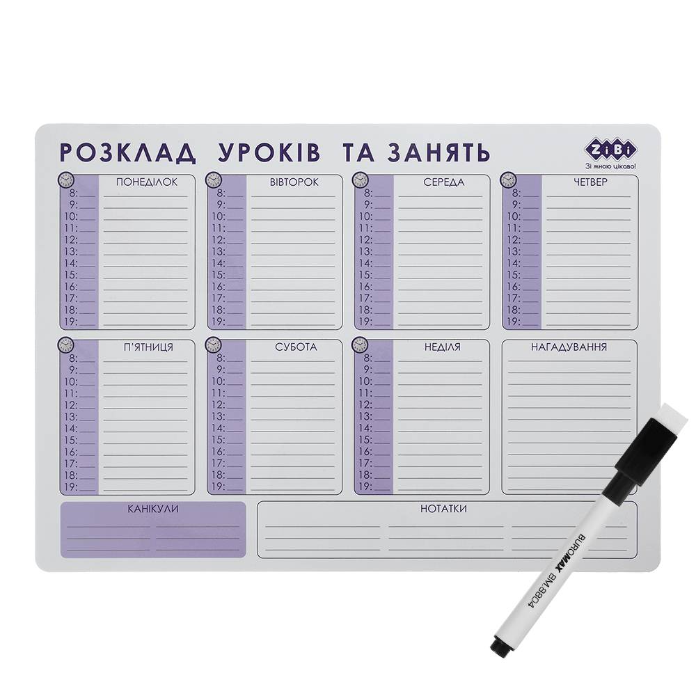 Планер настінний магітний ZiBi розклад уроків та занять А3 з чорним маркером (ZB.0001-99)