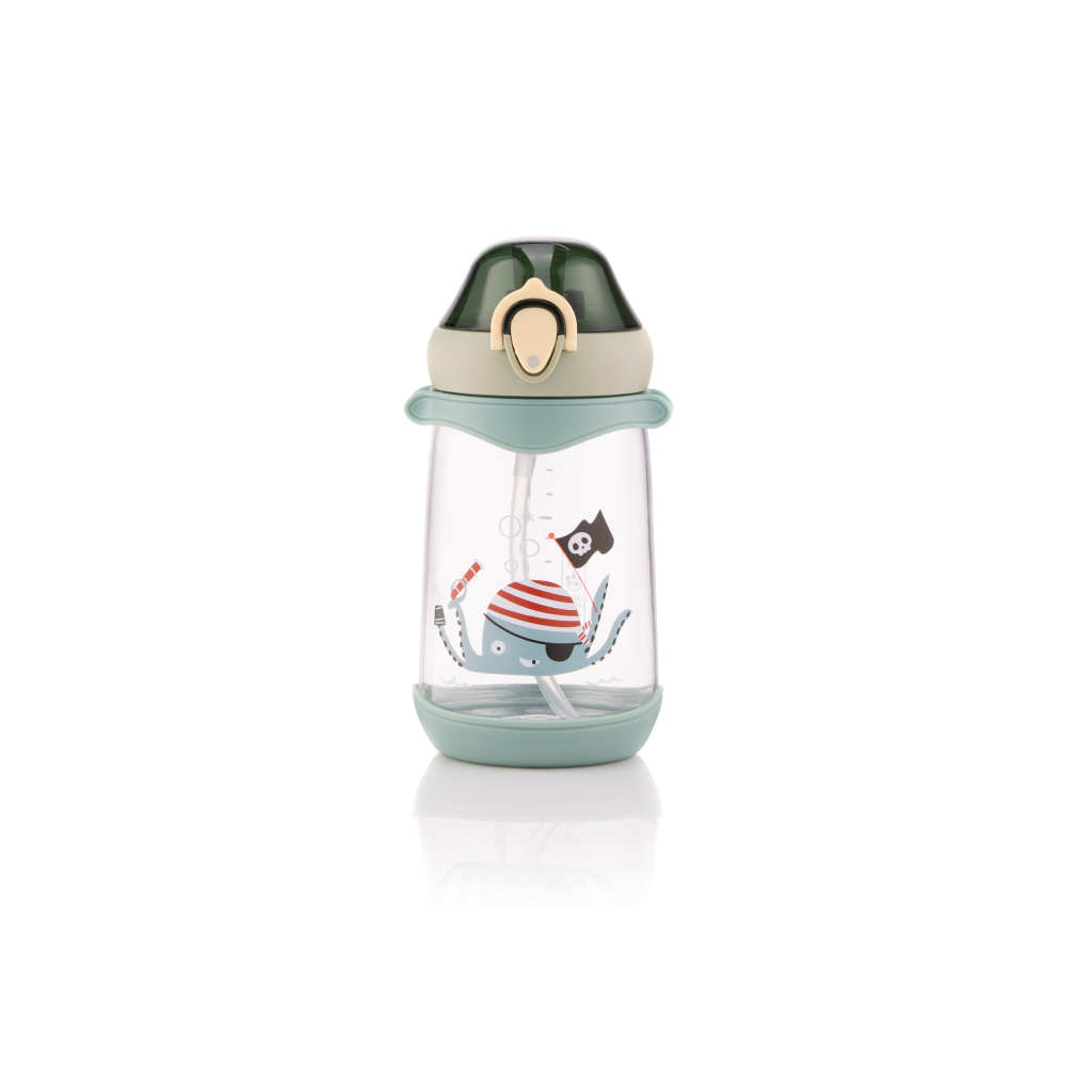Опис: | Пляшка із зображенням пірата-восьминога. Має ергономічну форму та клапан для пиття, що закривається кришкою з фіксатором. Придатна для зберігання рідини температурою від -20 до +100 °C. Можна мити в посудомийній машині. Колір зелений. |