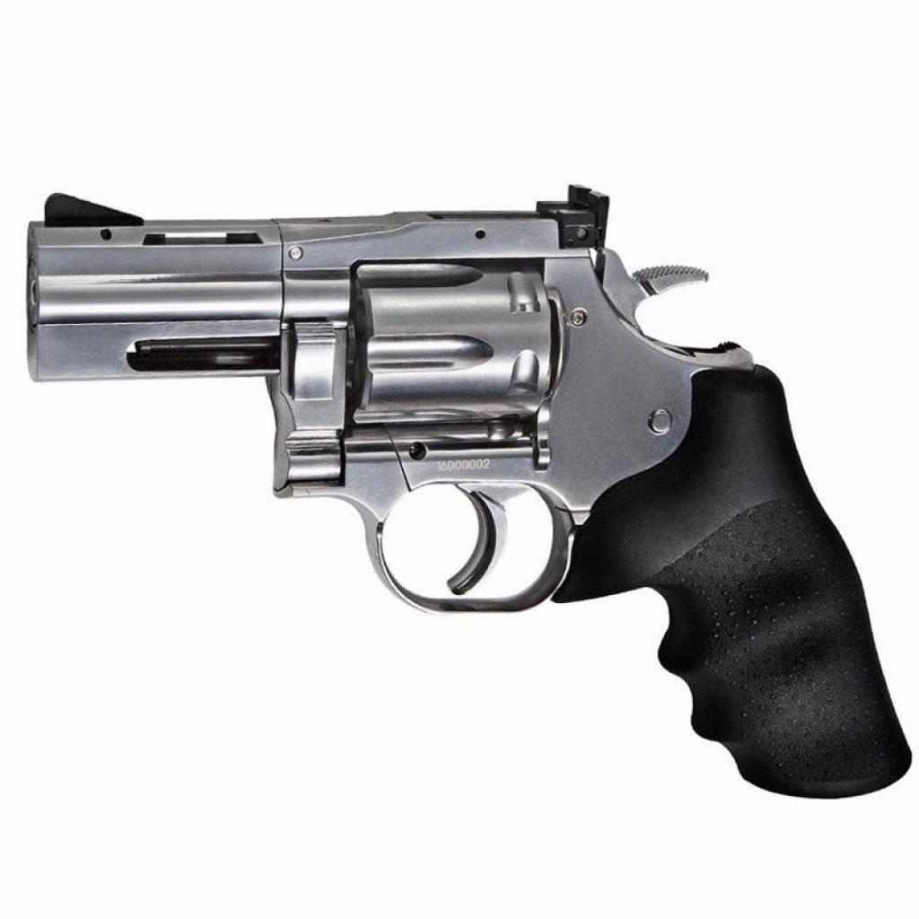 Асортимент ASG надає можливість зіштовхнутися з справжньою класикою - легендарним револьвером конструкції Сміта і Вессона виробництва компанії Dan Wesson Firearms. Пневматична версія зберегла найдрібніші деталі як зовнішнього дизайну (регульована мушка), так і внутрішньої конструкції (ударно-спусковий механізм подвійної дії). З металу виготовлений не тільки корпус, але і повністю функціональний відкидний барабан. На відміну від класичної конструкції пневматичного пістолета, тут кулі встановлюються не в магазин, а в шість спеціальних фальшпатронів, що імітують патрони бойового револьвера. Таким чином, револьвер, як і бойової аналог, одночасно може бути споряджений тільки шістьма кулями.