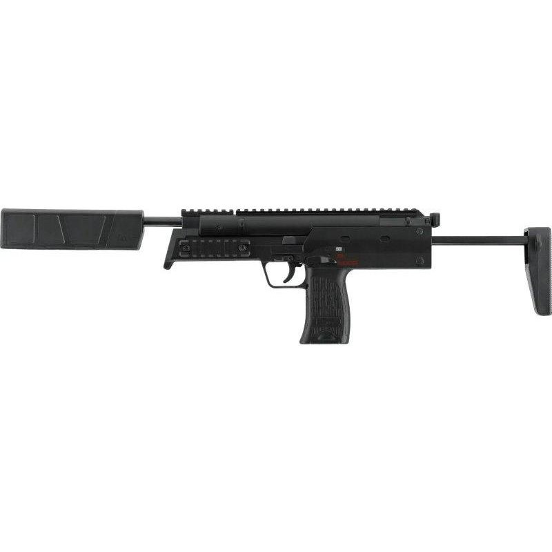| Додатково: | Пневматична версія пістолета переломної дії з нарізним стволом знаменитого пістолета-кулемета MP7. Пістолетна рукоятка має зручну нековзну конструкцію, що забезпечує надійне захоплення. Висувний приклад допомагає підвищити стабілізацію при прицілюванні та може бути встановлений в одне із трьох положень. Імітатор саундмодератора допомагає зручно перезаряджати пневматичний пістолет, забезпечуючи надійне захоплення в процесі заряджання. Для встановлення додаткових аксесуарів передбачено інтерфейс Пікатінні на 12,9 та 3 години. Запобіжник розташований у задній частині ствольної коробки |