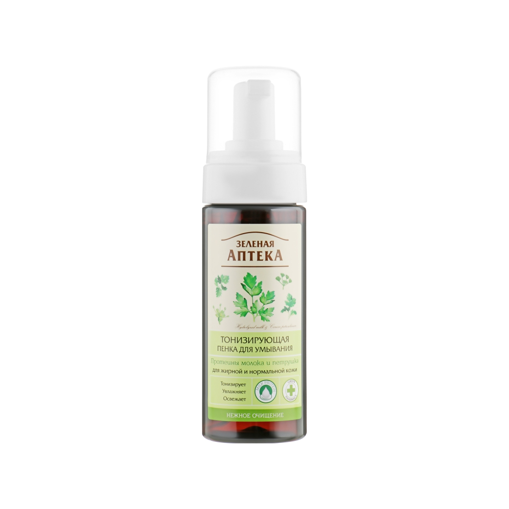 Серія якісних і високоефективних косметичних засобів української торгової марки «Зелена аптека» поповнилася новою ніжною тонізувальною пінкою для вмивання, призначеною для щоденного ретельного і дбайливого очищення делікатної шкіри обличчя, шиї та зони декольте. Цей дивовижний доглядовий засіб пом'якшує, тонізує і відновлює навіть дуже чутливу шкірну мантію, повертаючи бархатистість і наповнюючи невимовним відчуттям свіжості та комфорту.