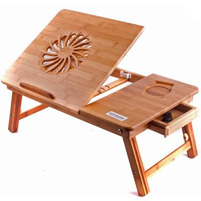 Екологічний складаний столик для ноутбука або планшетного комп'ютера принесе Вам масу комфорту і задоволення від роботи або відпочинку. Окремо від каркаса стільниці передбачено регулювання кута нахилу стільниці для встановлення ноутбука або планшетного комп'ютера під різними кутами для комфортного користування. Також на майданчику поряд з робочою поверхнею стільниці передбачена підставка під чашку c ароматною кавою або c тонізуючим чаєм. Компанія UFT йде в ногу з часом - по-цьому також на поверхні додаткової площадки передбачено місце для безпечного розміщення Вашого смартфона при заряджанні від ноутбука або просто для фіксації.