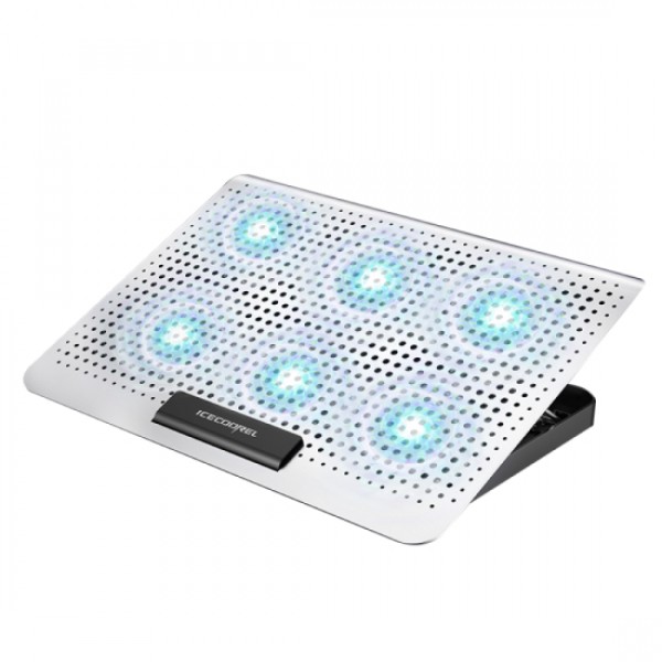Підставка під ноутбук IceCoorel A19, 10-15.6", 6*60mm 580±10% RPM, корпус пластик+алюміній, 2xUSB 2.0, 350x225x26mm, Silver, Box, Q50