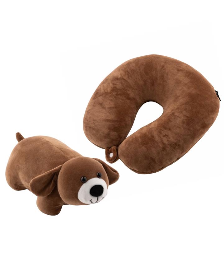 Подушка-трансформер для шиї ARDESTO Travel Сute Dog 30х30см, полістиролові кульки, коричневий