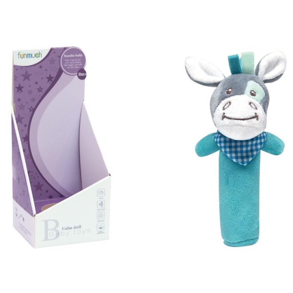 З брязкальцем - паличкою від торгової марки Funmuch, яка повністю м'яка і зроблена з приємної на дотик тканини, ваша дитина буде із задоволенням проводити час, розглядаючи всі деталі і з інтересом вивчаючи нового друга. М'який і приємний на дотик ослик обов'язково сподобається вашому малюкові. Дана іграшка комфортно розміщується в долоні, тому дитина без зусиль зможе самостійно тримати її однією або двома ручками. Дана іграшка допоможе вашій дитині розвинути дрібну моторику, уважність, зорову і механічну пам'ять.