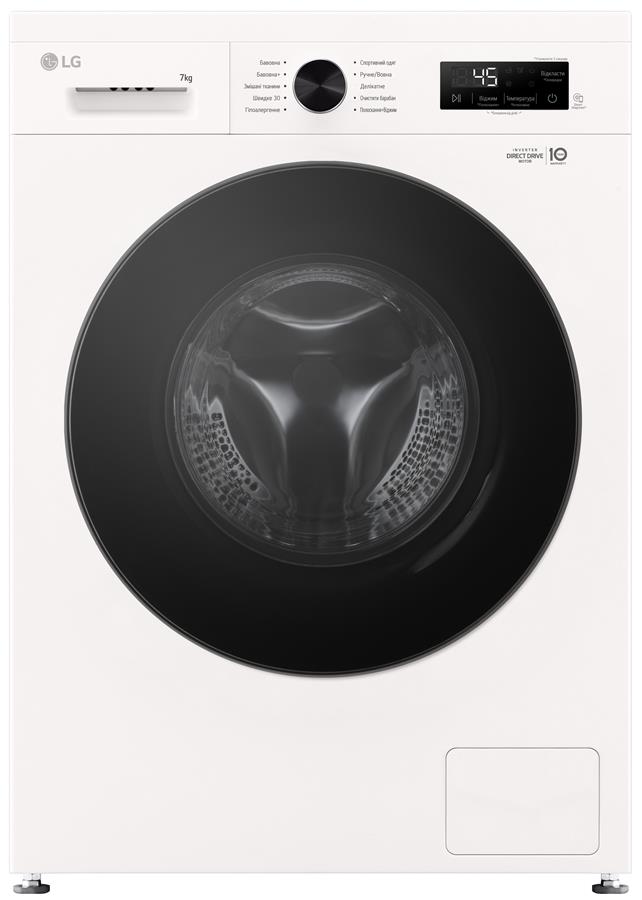 Пральна машина LG фронтальна, 7кг, 1200, A+++, 44см, дисплей, пара, інвертор, білий