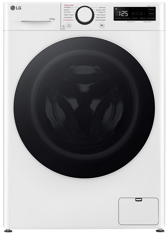 Прально-сушильна машина LG фронтальна, 9(5)кг, 1200, А, 48см, дисплей, пара, інвертор, білий