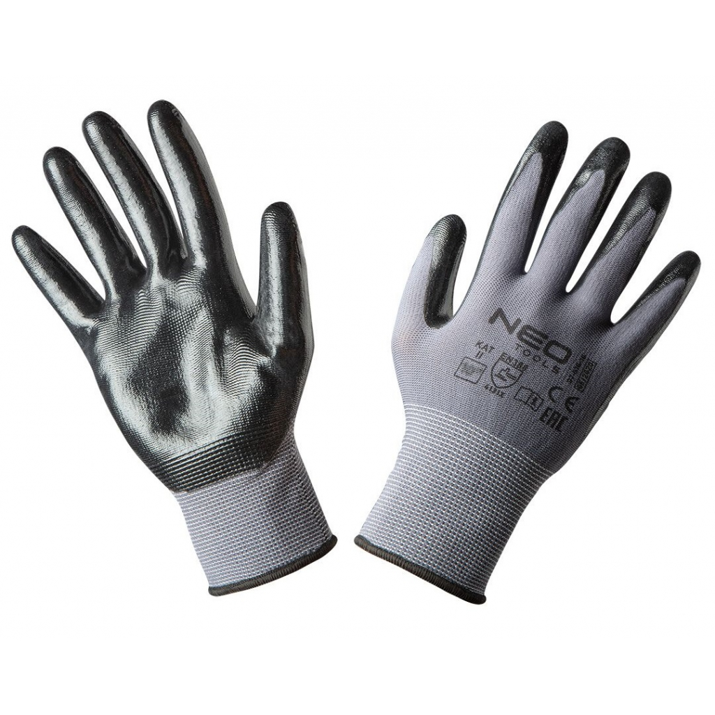 Рукавички робочі NEO, нітрилове покриття, нейлон, р.10, сірий