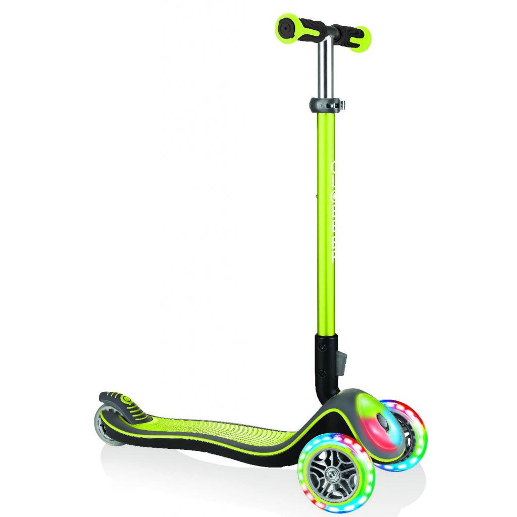 ELITE LIGHTS самокат с подсветкой передней части и со светящимися колесами, мерцающими красными, зелеными и синими светодиодами.