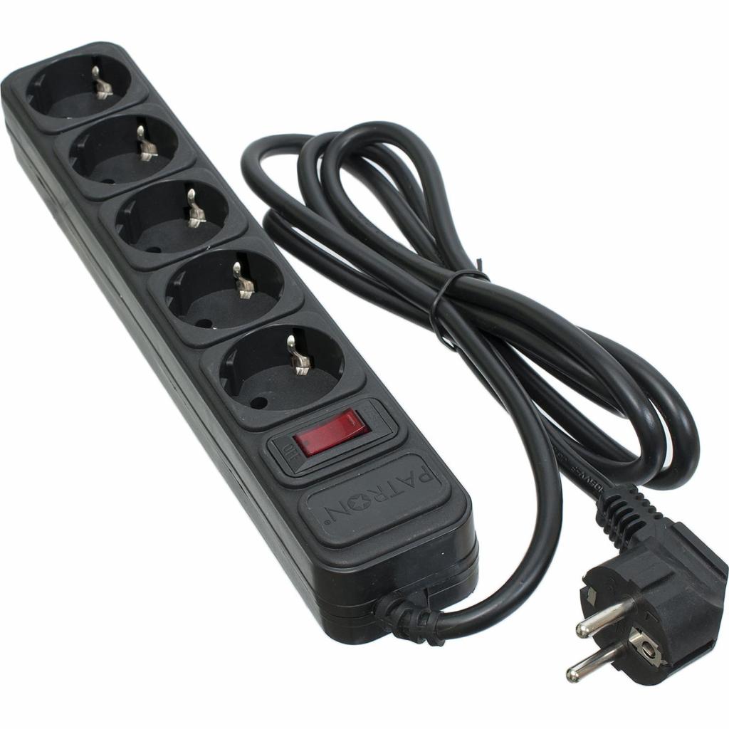 Мережевий фільтр живлення PATRON 1.8 m3*1.5mm2 (SP-1652) 5 розеток BLACK (EXT-PN-SP-1652)