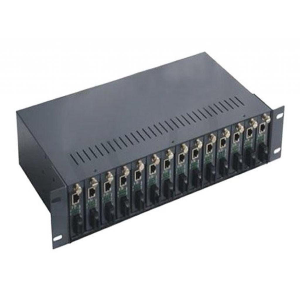 Новий варіант 14-ти слотового шасі FoxGate дозволяє створити інтегроване рішення на базі медіа-конверторів лінійки FoxGate. Шасі дозволяє встановлювати кілька медіа-конверторів в 19 дюймову стійку разом з тими мережевими пристроями, для яких потрібно перетворити середу передачі даних. Це забезпечує економію простору, і ваша СКС буде виглядати акуратно.
