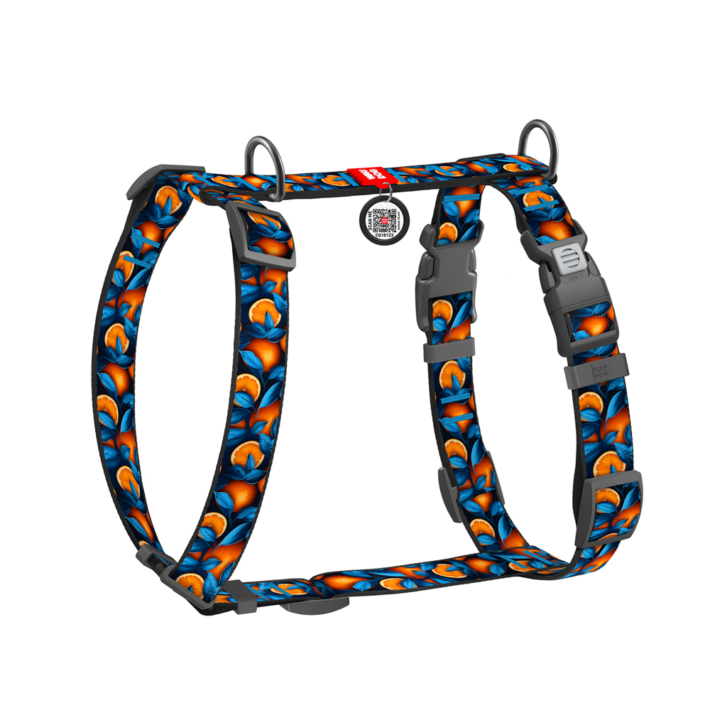 Шлея для собак WAUDOG H-подібна анатомічна Nylon з QR адресником "Апельсини" пластиковий фастекс S (343-4054)