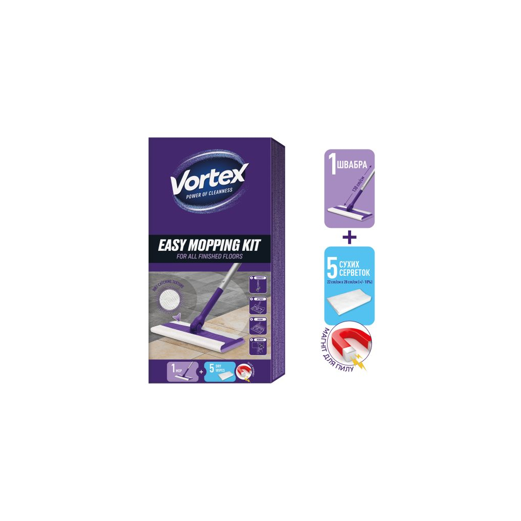Швабра Vortex Для прибирання підлоги + Сухі серветки для підмітання 5 шт. (4823071667431)