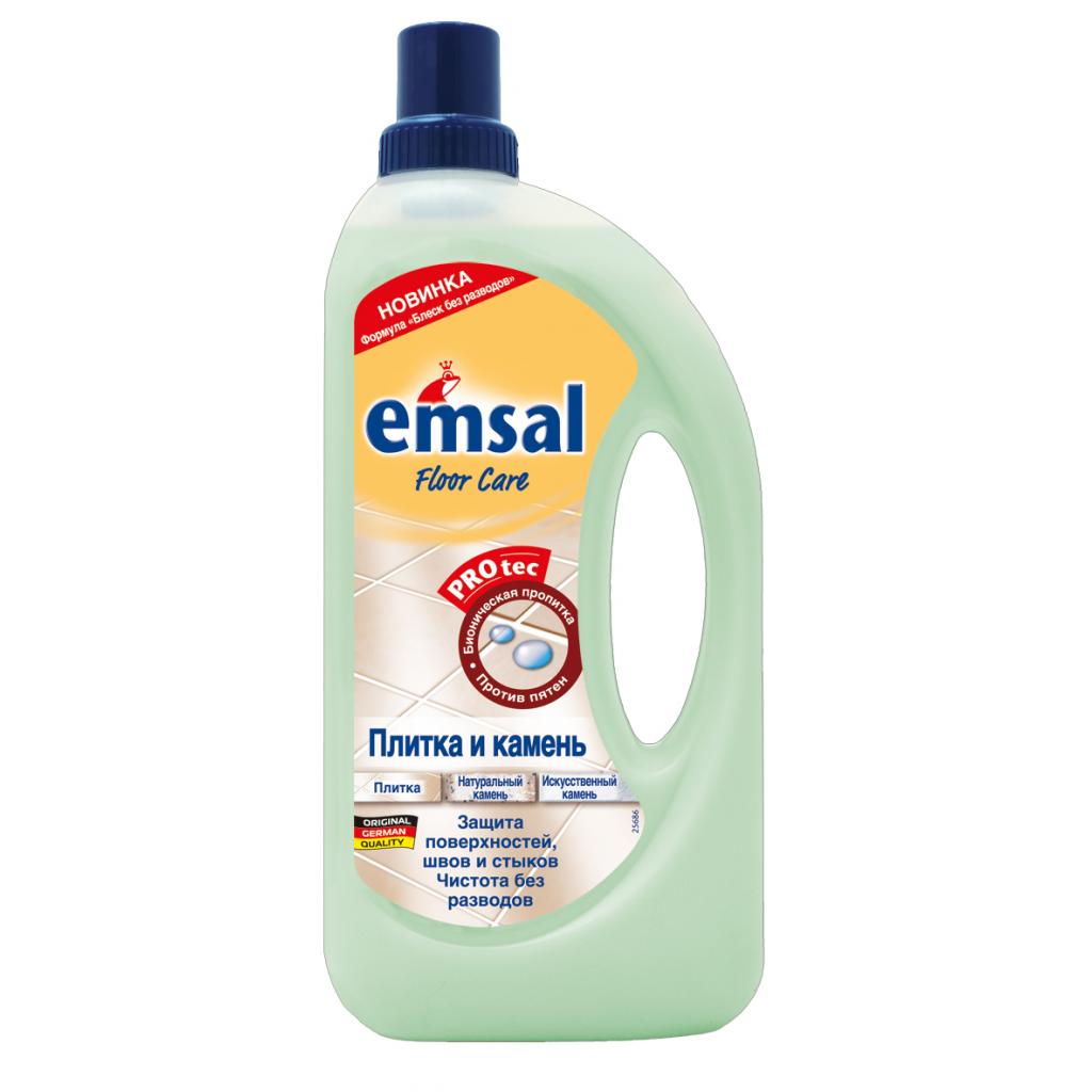 Нова рецептура засобу для каменю і кахлю із захистом від плям Emsal зі спеціальними просочувальними засобами захищає поверхню чутливих кам'яних підлог від плям жиру і бруду і, таким чином, полегшує поточну очищення - зовсім без нашарувань. Для підлог, що піддаються особливому навантаженню (подряпини, колії) рекомендується застосовувати в чистому вигляді, щоб дати підлозі необхідний інтенсивний догляд і повернути природний блиск.